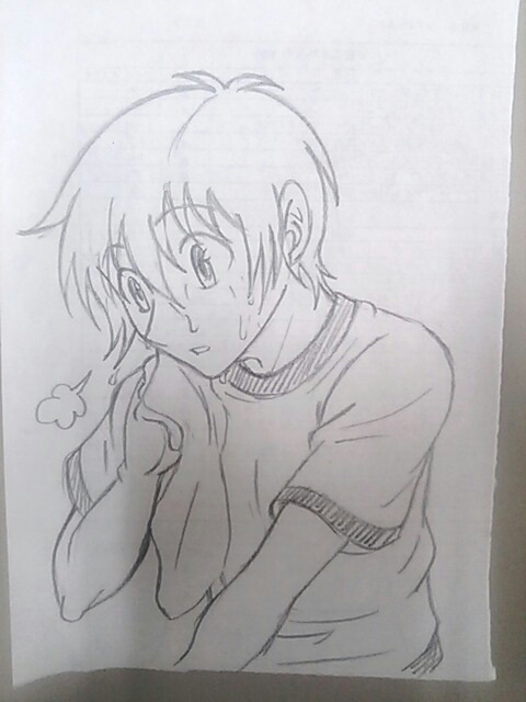 体育の授業の後に水道で顔を洗ってる寿也のイメージです。