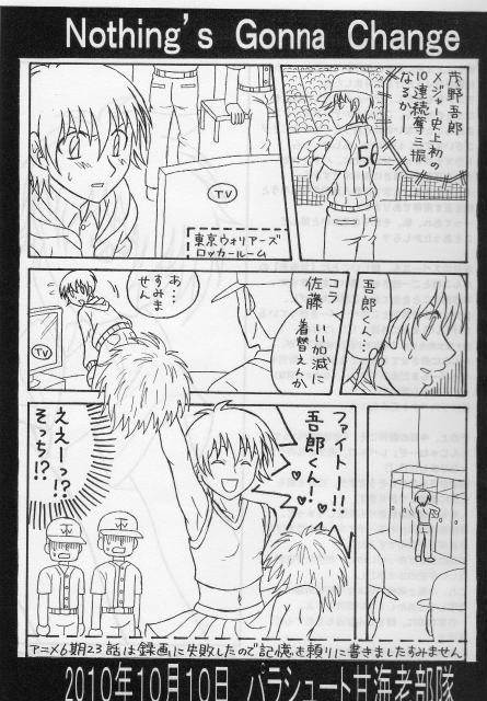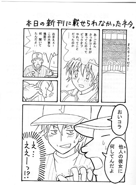 当時の原作はメジャー編でしたから、寿也の出番は皆無でしたが、この直後(9月)再登場(単行本75巻第3話『それぞれの明日』にて)したので、タイミングが悪いったらありゃしない状態でした(^_^;)