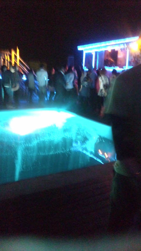 (←奥の小屋にDJがいます。 プールをグルっと囲んで我々は踊ります)