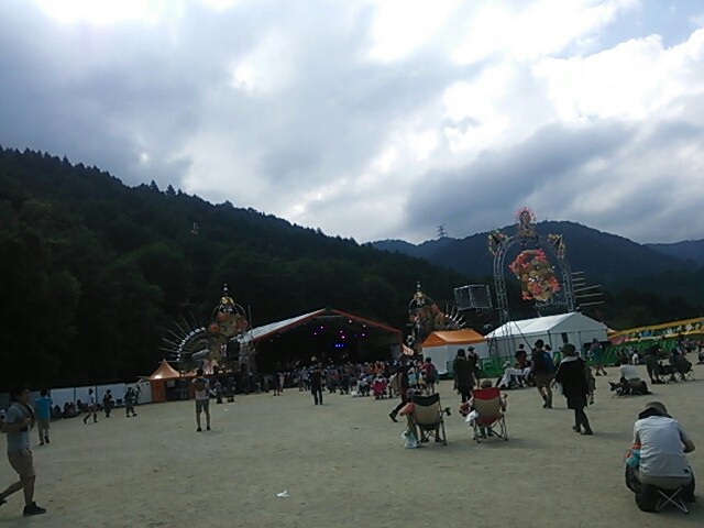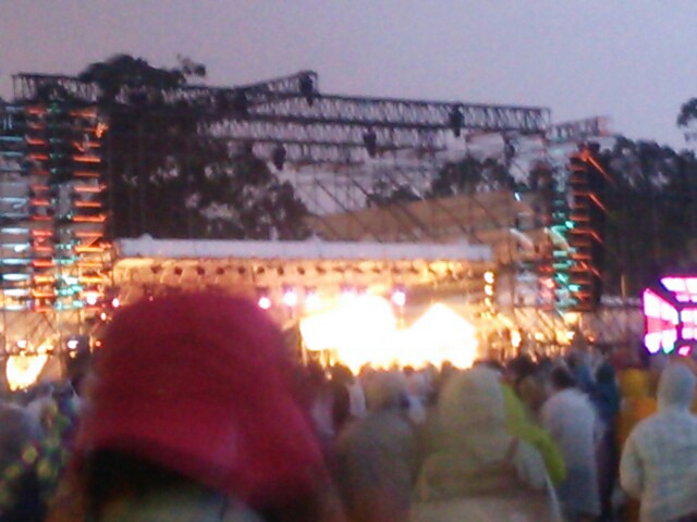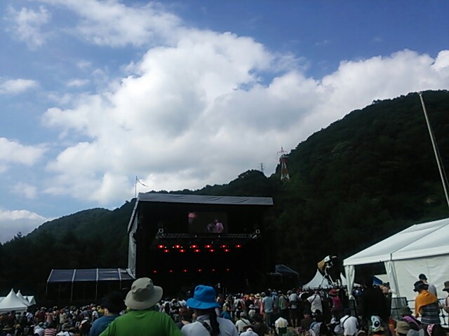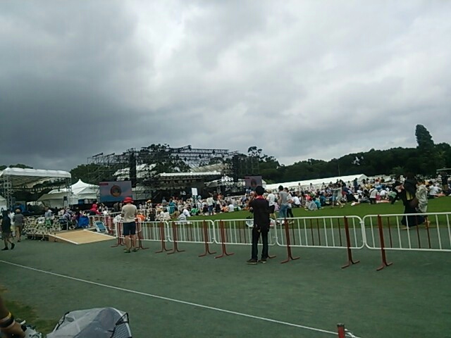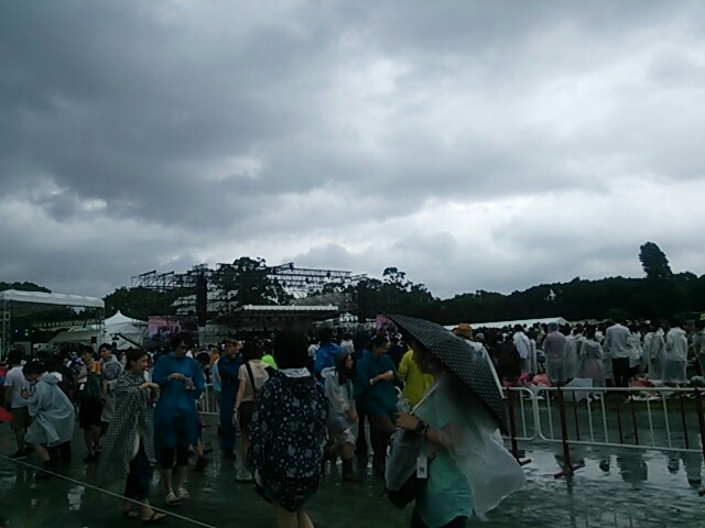 ステージが始まる前は曇りつつも時々日が差してましたが、ライブが始まった途端に豪雨に見舞われました(--;)