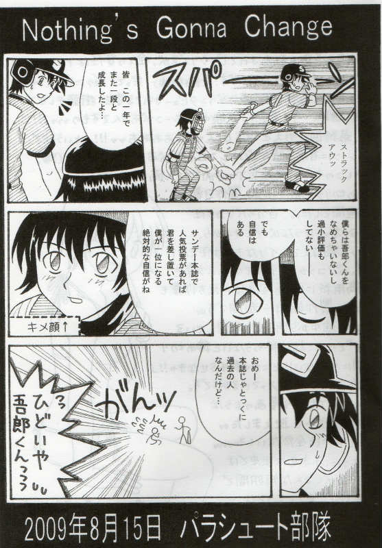 当時の原作はメジャー編でしたから、寿也の出番は皆無でしたが、この直後(9月)再登場(単行本75巻第3話『それぞれの明日』にて)したので、タイミングが悪いったらありゃしない状態でした(^_^;)